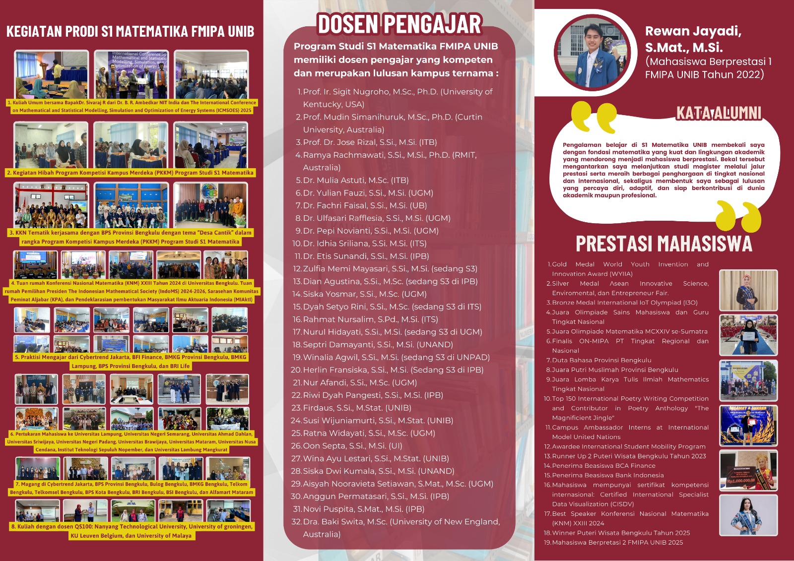 The management of Bengkulu University always supports us in carrying out the vision and mission of the study program. Funding and policy support are given without hesitation when it comes to achieving the vision and mission. This support makes us feel confident that what we want will come true.