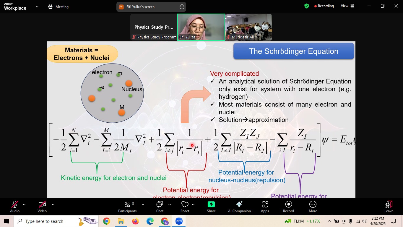 Beyond the learning aspect, this activity also facilitated potential research collaborations aligned with the Density Functional Theory theme that delivered by Dr. Elfi. Both parties hope that this collaboration will continue and develop in various aspect including research collaboration, student exchange etc.