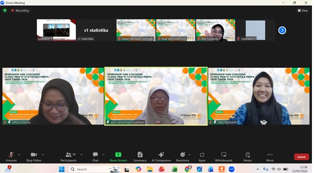 BENGKULU, 12 Februari 2026 – Program Studi S1 Statistika Fakultas Matematika dan Ilmu Pengetahuan Alam (FMIPA) Universitas Bengkulu (UNIB) menyelenggarakan Workshop dan Coaching Clinic Program Kreativitas Mahasiswa (PKM) Tahun 2026 dengan mengusung tema “Inovasi Metode Analisis Berbasis Data untuk PKM Berkualitas dan Kompetitif.” Kegiatan ini menjadi bagian dari upaya strategis prodi dalam meningkatkan kualitas proposal PKM mahasiswa agar mampu bersaing di tingkat nasional.