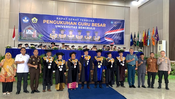 The ceremony was conducted in a dignified atmosphere and attended by university leaders, members of the academic community, family members, and invited guests from various institutions. This occasion marks a significant milestone not only for Prof. Dr. Jose Rizal, S.Si., M.Si., but also for the advancement of applied mathematics within the University of Bengkulu.