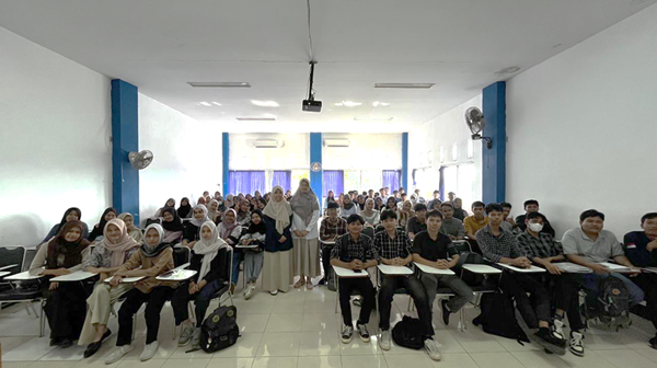 The session was conducted interactively, where students not only listened to the presentation but also actively participated in discussions and question-and-answer sessions regarding the application of data analysis in practice. Students showed strong enthusiasm, as reflected in the wide range of questions raised, particularly concerning the use of statistical software, interpretation of analytical results, and challenges in handling large-scale data.