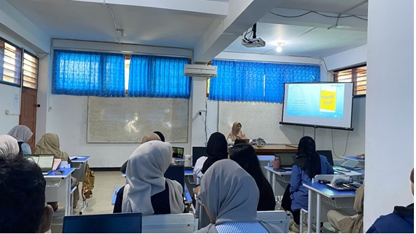 The activity was attended by 34 students and was conducted in several sessions, including material presentations, demonstrations, and discussion and question-and-answer sessions. The students showed high enthusiasm by actively asking questions related to common issues encountered during the thesis writing process.