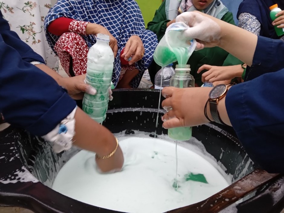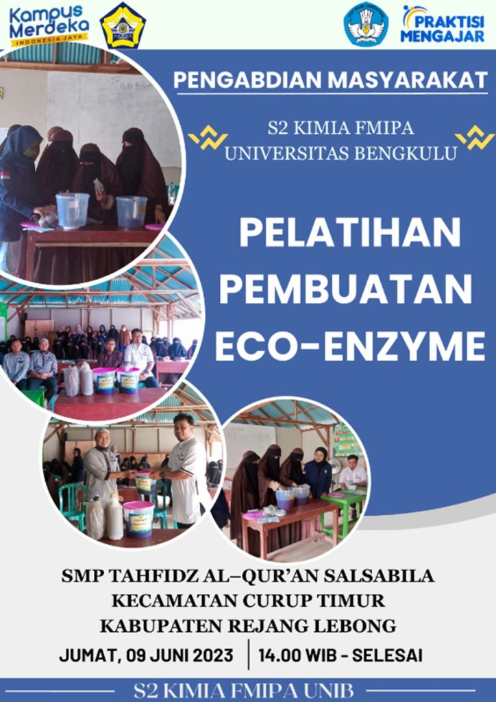 Mahasiswa Program Studi S2 Kimia, Fakultas MIPA, Universitas Bengkulu pada semester genap 2022-2023 kembali melatih siswa, guru, dan ibu-ibu rumah tangga pada kegiatan “Pelatihan Teknologi Tepat Guna Pembuatan Eko Enzim dari Limbah Organik Menjadi Cairan Serba Guna dan Pelatihan Pembuatan Sabun Cuci Piring