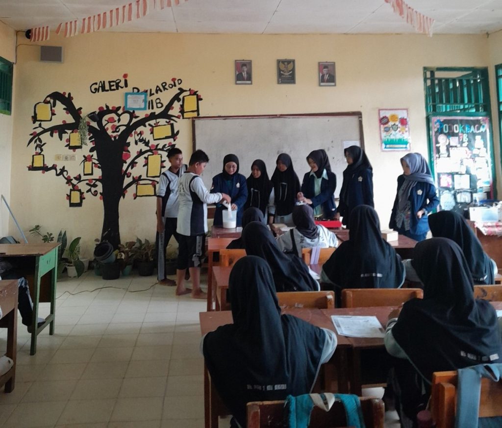 Guru dan siswa-siswi MTSN 2 Bengkulu terlihat sangat antusias mengikuti jalannya pelatihan yang dilakukan serta praktek langsung bagaimana cara membuat lilin aroma terapi dan VCO.
