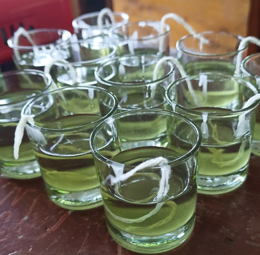 Lilin aroma terapi berbahan dasar minyak atsiri dan paraffin, selain dapat digunakan untuk penerangan juga bermanfaat untuk kesehatan. Minyak atsiri yang digunakan berkhasiat sebagai pengusir nyamuk dan memberikan efek relaksasi, sehingga dapat membuat tidur menjadi lebih tenang dan nyenyak, ujar Winda selalu salah seorang tim pengabdian mahasiswa.