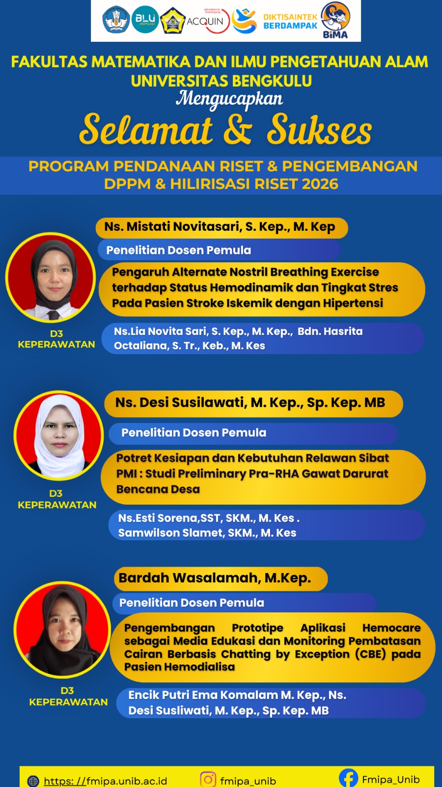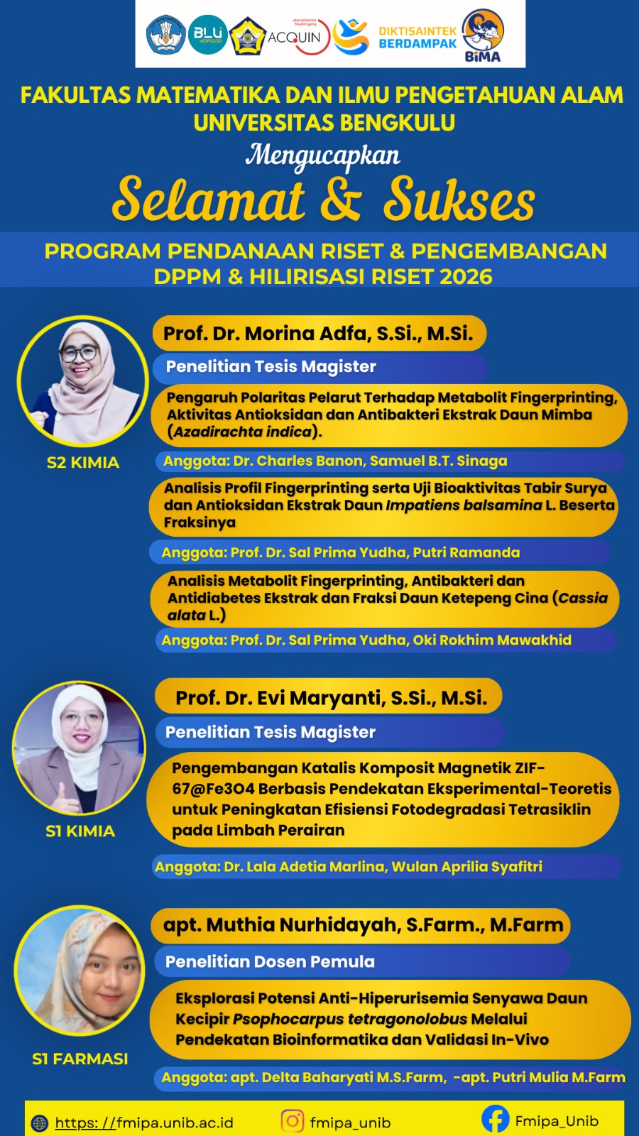 Pimpinan Fakultas Matematika dan Ilmu Pengetahuan Alam Ucapkan Selamat kepada Dosen Penerima Hibah Pendanaan Riset 2026