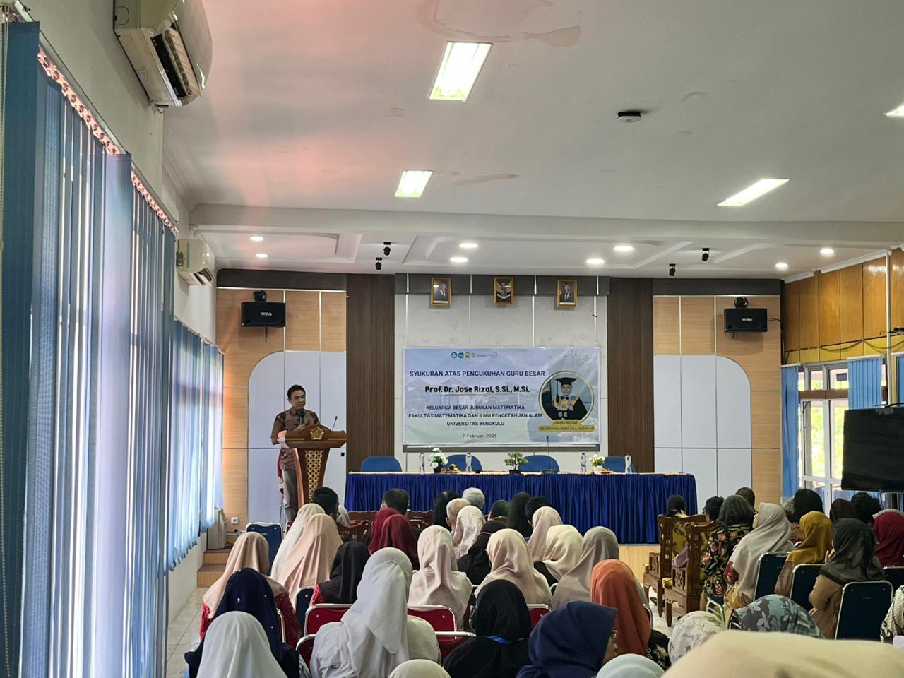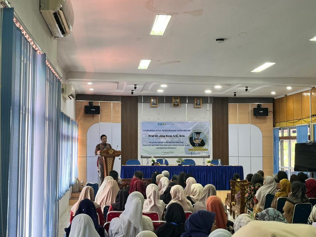A thanksgiving ceremony was held on Wednesday, April 11, 2026, in the main meeting room of the Faculty of Mathematics and Natural Sciences, University of Bengkulu, for the promotion of Prof. Dr. Jose Rizal, S.Si., M.Si., which was officially inaugurated on Tuesday, April 10, 2026. The ceremony was opened by Prof. Dr. Salprima Yudha S, S.Si., M.Si., Dean of the Faculty of Mathematics and Natural Sciences, and attended by lecturers, academics, and students from the Faculty of Mathematics and Natural Sciences, University of Bengkulu.