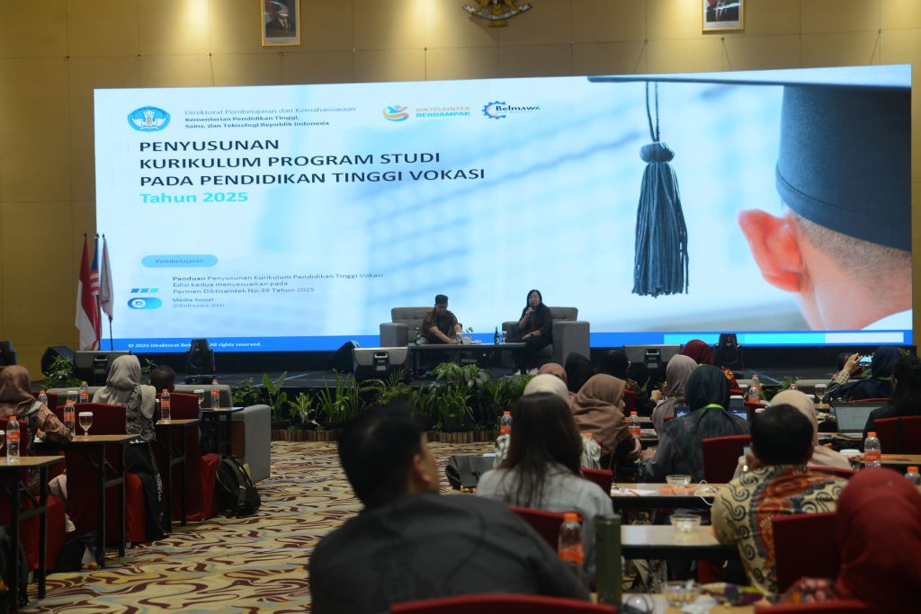 Sesi selanjutnya membahas topik Kurikulum Vokasi, oleh Desutama Rachmat Bugi Prayogo, S.T., M.T., yang fokus pada pengembangan kurikulum berbasis Outcome-Based Education (OBE). Pada sesi ini dijelaskan struktur kurikulum vokasi modern, prinsip perancangan CPL–CPMK, rekonstruksi pembelajaran berbasis praktik nyata, serta urgensi link and match dengan dunia kerja.
