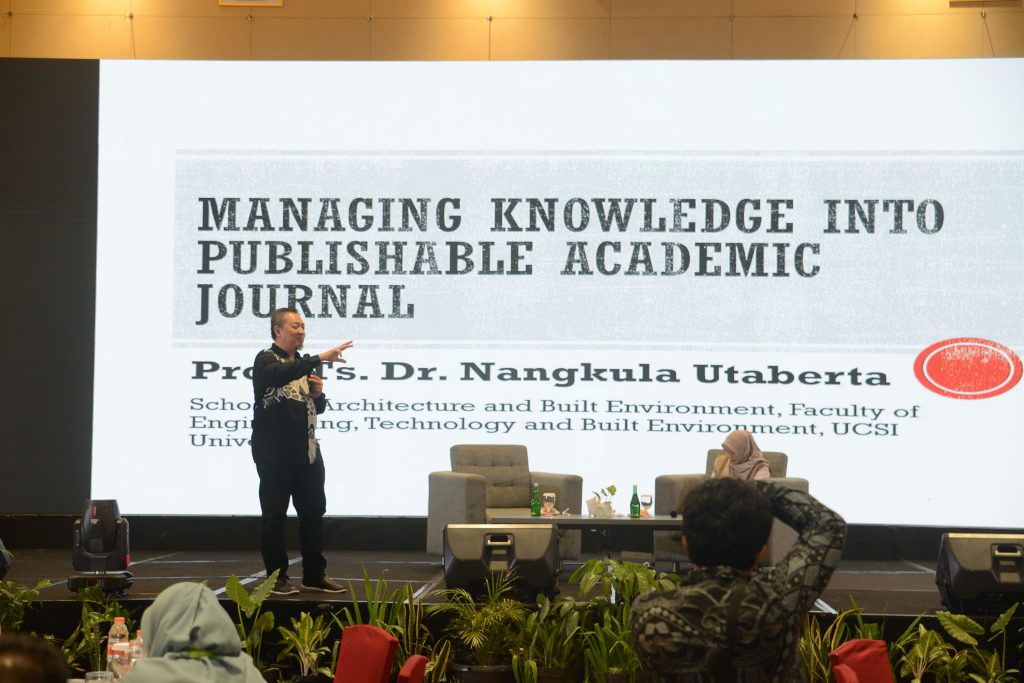 Selain itu, peserta juga diberikan pemahaman tentang bagaimana mengelola pengetahuan untuk diterbitkan dalam jurnal akademik melalui sesi Managing Knowledge into Publishable Academic Journal oleh Prof. Ts. Dr. Nangkula Utaberta. Dosen vokasi diberikan gambaran dalam menulis dan menstrukturkan artikel ilmiah, mulai dari pemilihan topik, metode penulisan, etika publikasi, hingga strategi agar artikel diterima di jurnal bereputasi.